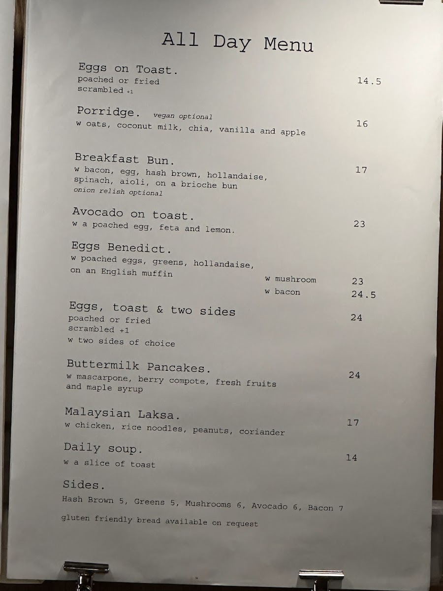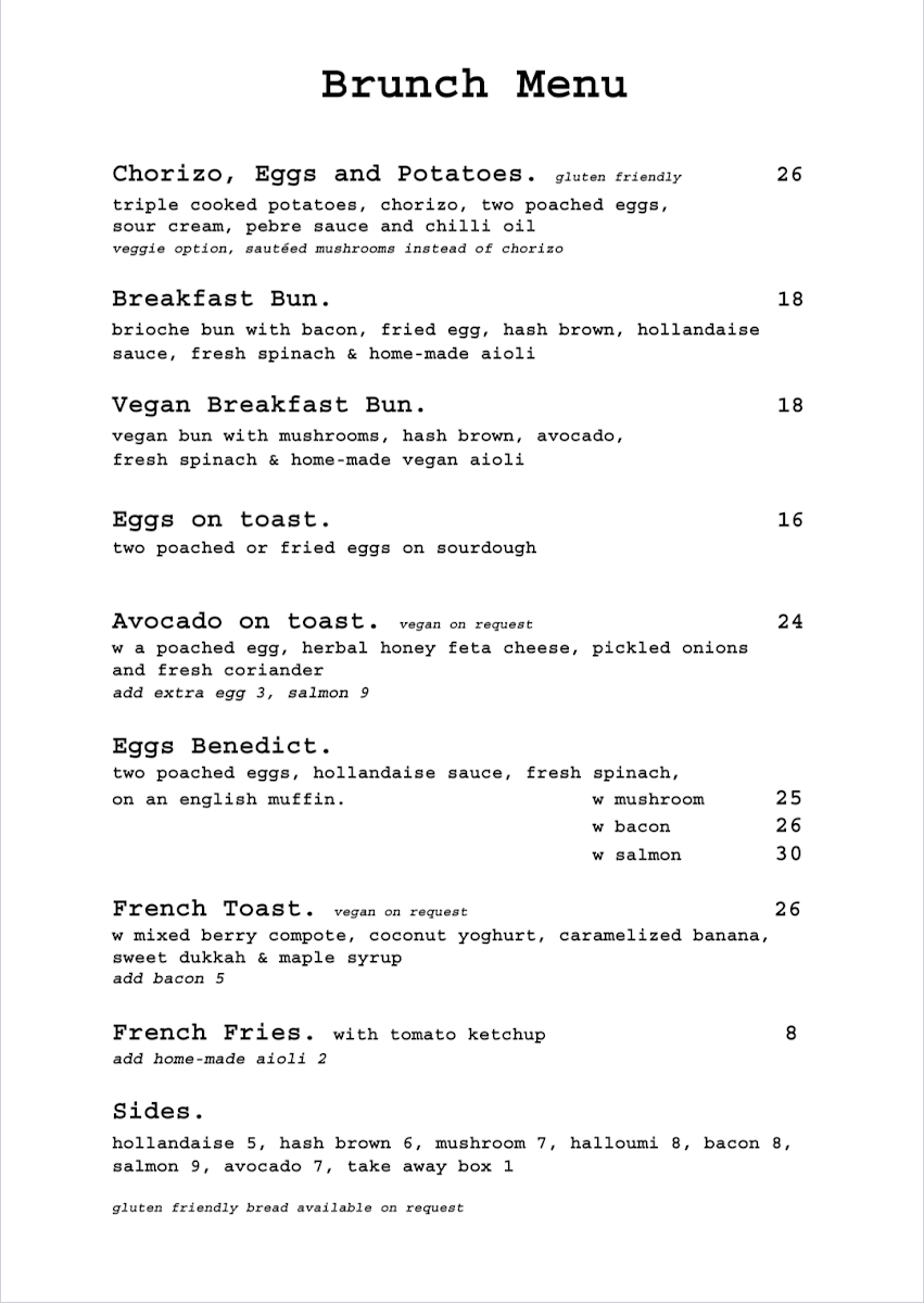 Marmolada Cafe offers a delightful variety of dishes that cater to different tastes, making it a perfect spot for any time of day. Their brunch menu features flavorful options like Chorizo Hash, French Toast, and the classic Eggs Benedict. For a more vibrant and hearty choice, Shakshouka is a must-try. The Breakfast Bun is a satisfying and quick option, ideal for a grab-and-go meal. Their hot drinks range from the rich Flat White and Cappuccino to the indulgent Mocha and comforting Hot Chocolate. For those preferring something cold, the cafe also offers refreshing beverages such as Iced Latte, Iced Americano, and Iced Mocha, alongside unique choices like the Iced Chai Latte and Iced Vanilla Matcha Latte. The all-day menu features versatile staples such as Eggs On Toast, Porridge, and the popular Buttermilk Pancakes. To complement these dishes, diners can add sides like Hash Brown, Greens, Grilled Tomato, Mushrooms, or Bacon. Whether you’re stopping by for a brunch feast or a quick coffee break, Marmolada Cafe’s menu delivers a variety of delicious and satisfying options for every taste.
